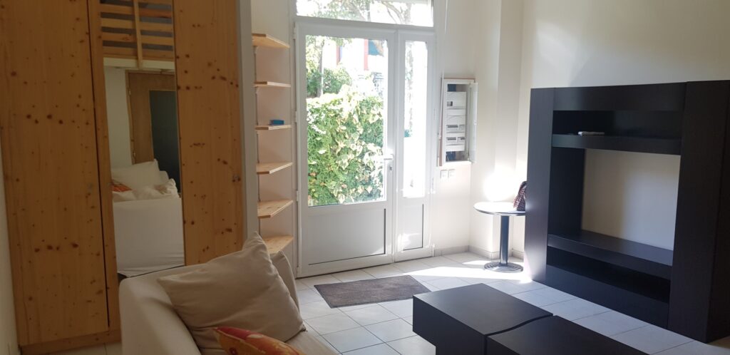 T1 bis meublé FONTAINE LESTANG 28.54 m² dans petit immeuble en RDC avec petit terrasse, cuisine équipée, cambre en rochelle, pièce principale, SDE et WC. Climatisation 553 € + 40 € soit 593 € CC par mois caution 1 106 € FA 343 € 06.22.68.20.37